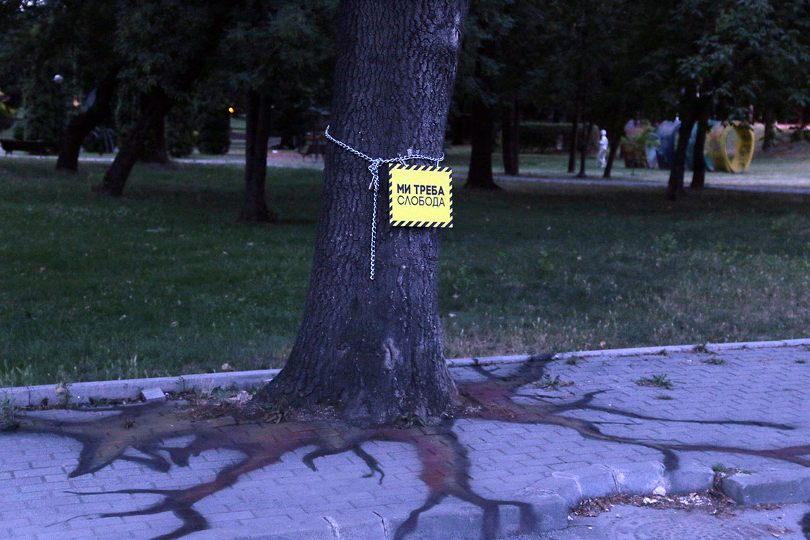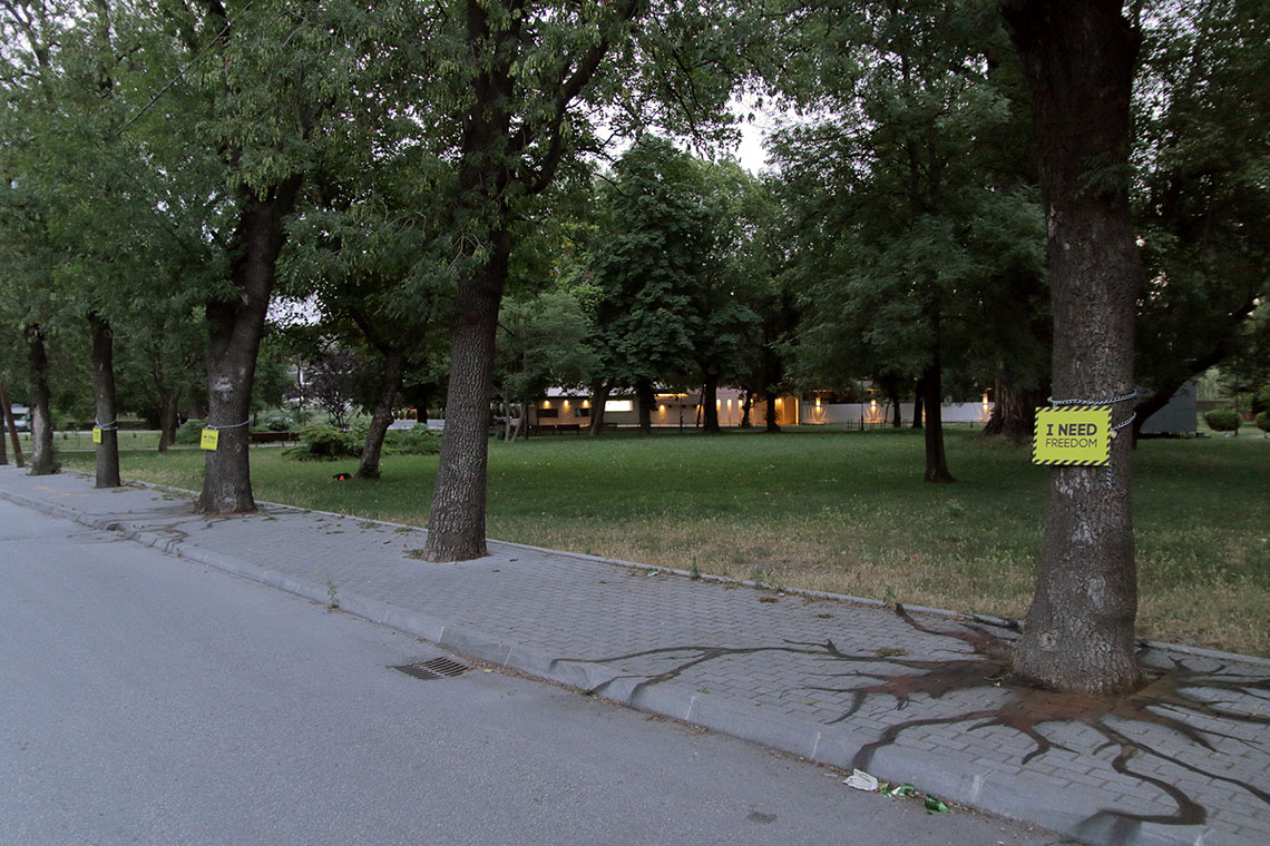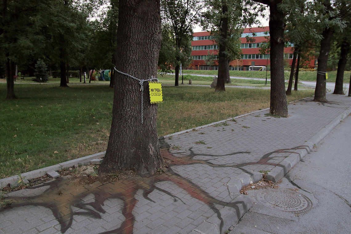 Кога не разбирате што ви се зборува, ќе мораме да ви нацртаме, е пораката на граѓанските здруженија кои се борат за здрава животна средина и чист воздух. Граѓаните денеска со акција во Градскиот парк во Скопје, симболично доцртувајќи ги забетонираните корења на дрвјата, ставајќи синџири и оставајќи пораки за слобода на зеленилото, ги повикаа надлежните градски и општински власти да го отстранат бетонот со кој се задушени корењата на повеќе од 1.000 дрвја на територијата на Скопје, но и низ останатите градови во државата.