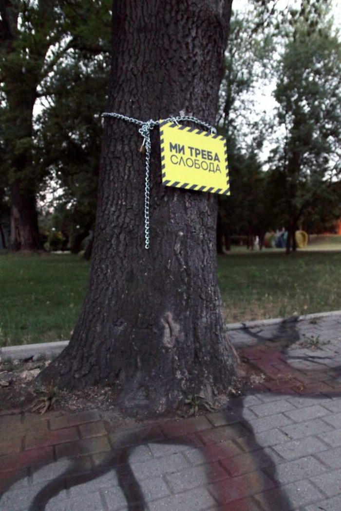Во Градскиот парк во Скопје, симболично беа доцртувани забетонираните корења на дрвјата и ставени синџири. Со акцијата здружението ги повика надлежните градски и општински власти да го отстранат бетонот со кој се задушени корењата на повеќе од 1000 дрвја на територијата на Скопје, но и низ останатите градови во државата.